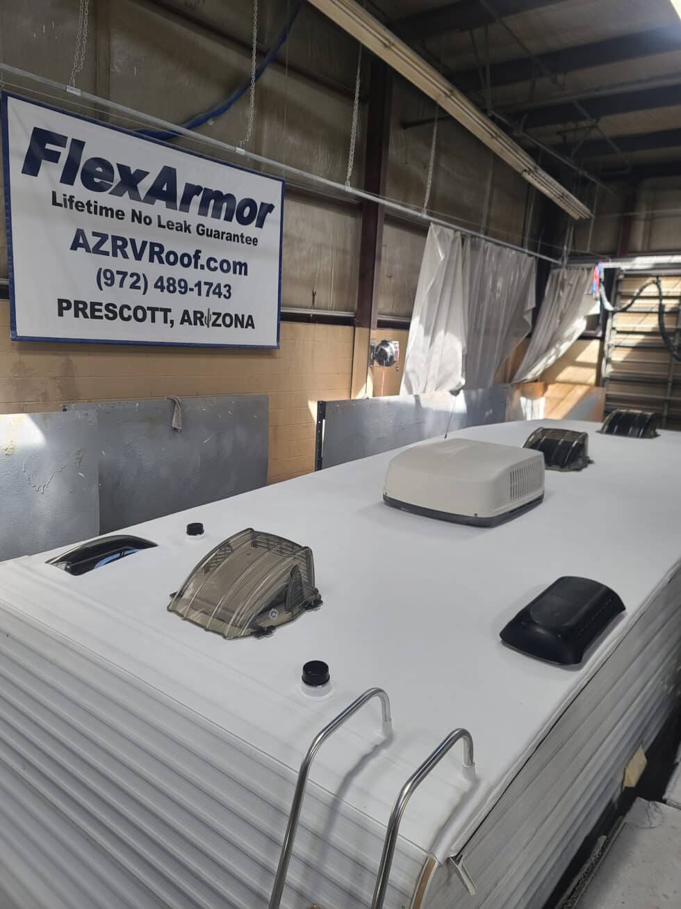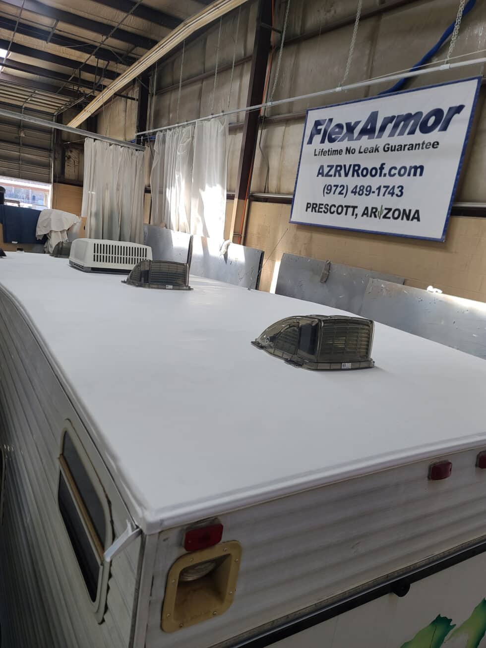 FlexArmor, a cutting-edge RV roof protection solution, can significantly enhance the Forest River T25’s durability and longevity by safeguarding it from water damage. FlexArmor’s advanced polyurea coating creates a seamless, impenetrable barrier over the RV’s roof. This seamless layer effectively prevents water from seeping into any cracks or seams, which are common vulnerabilities in traditional roofs. With FlexArmor’s exceptional protection against leaks and weather damage, Forest River T25 owners can travel with confidence, knowing that their investment is shielded from the costly and potentially devastating effects of water-related issues. This means extended lifespan, reduced maintenance costs, and worry-free travels as FlexArmor ensures that water damage won’t compromise the structural integrity or aesthetics of the RV.