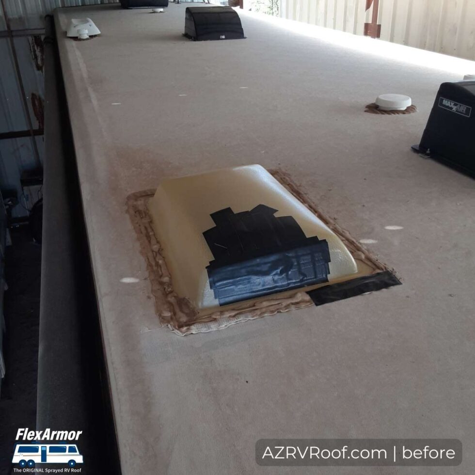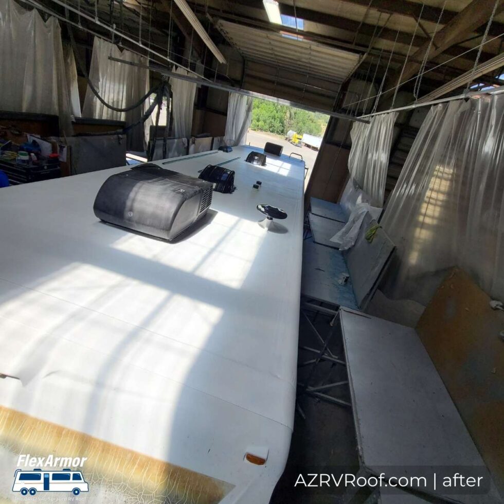 2015 Keystone Fuzion RV Roof Repair Search for: Bumper Pull RV Roof Repair Class A RV Roof Repair Class C RV Roof Repair Fifth Wheel RV Roof Repair Truck Camper Roof Repair Special Projects This 2015 Keystone Fuzion had a couple of minor issues: a loose roof membrane and a broken skylight lens. We fixed them up with a new FlexArmor roof and a skylight lens. #rving #prescottaz #rvroof #rvliving #rvroofrepair #rvlife #flexarmor #arizona #rvrepair Return to Fifth Wheel Gallery
