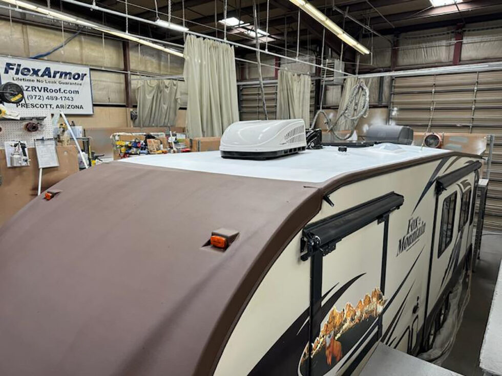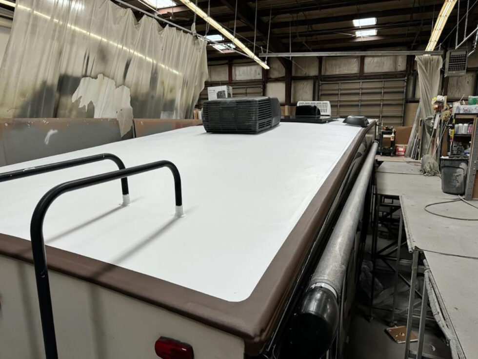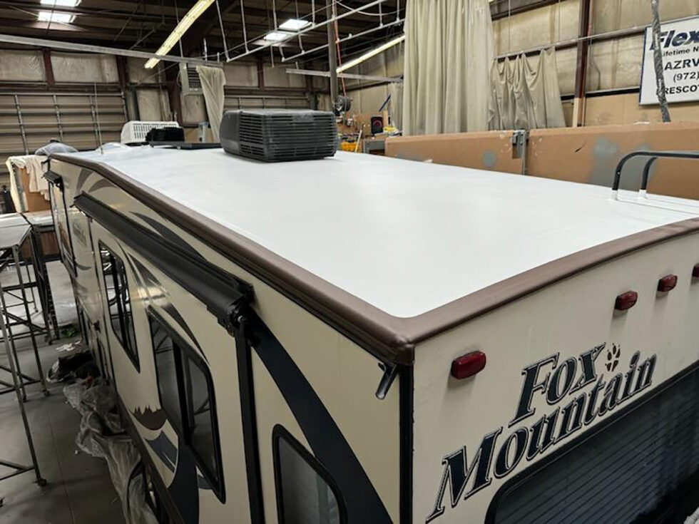 2013 Northwood Fox Mountain Special Project Work done on this special project: • Partial membrane removal • Prepped & sprayed front nose cap • Customer opted for the radius package Search for: Bumper Pull RV Roof Repair Class A RV Roof Repair Class C RV Roof Repair Fifth Wheel RV Roof Repair Truck Camper Roof Repair Special Projects Return to Special Projects Gallery